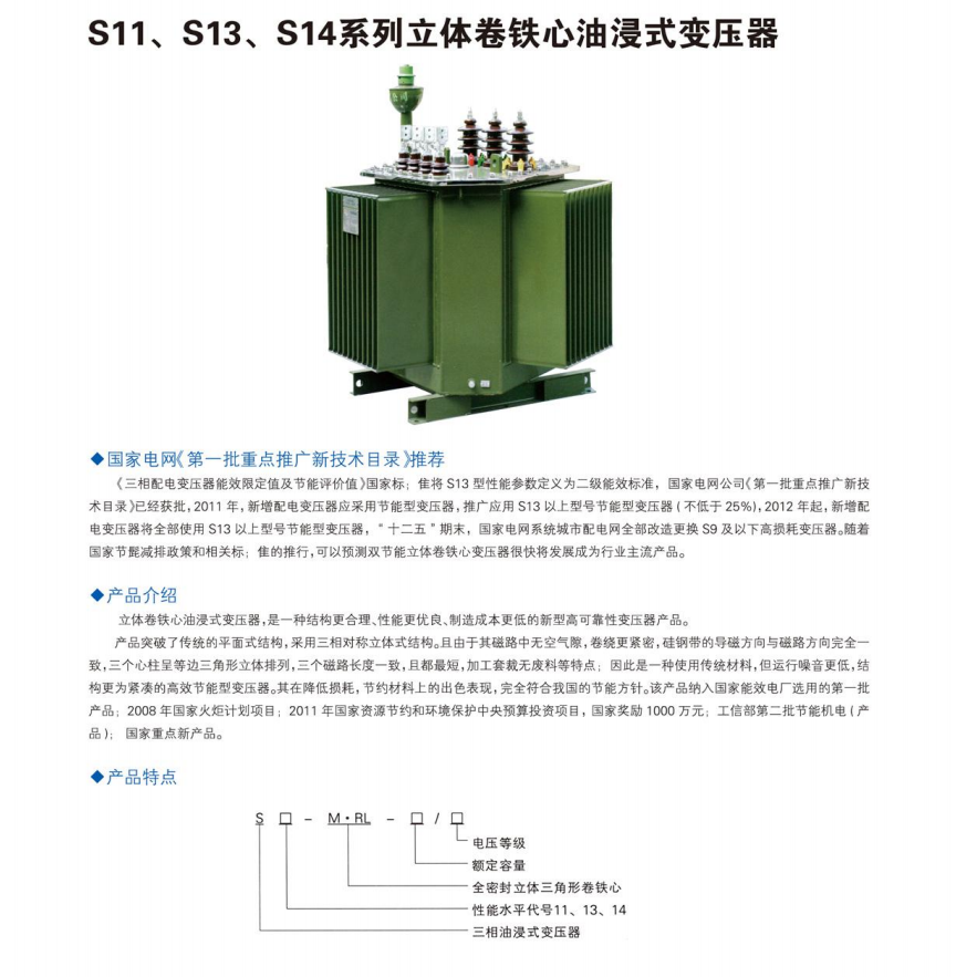 S11、S13、S14系列立体卷铁心油浸式变压器
