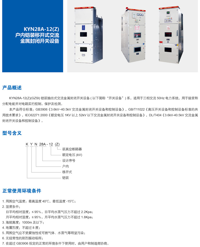 | KYN28A-12(Z)户内铠装移开式交流金属封闭开关设备 |