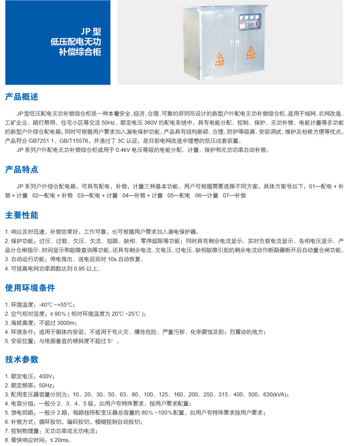 | JP型低压配电无功补偿综合柜 |