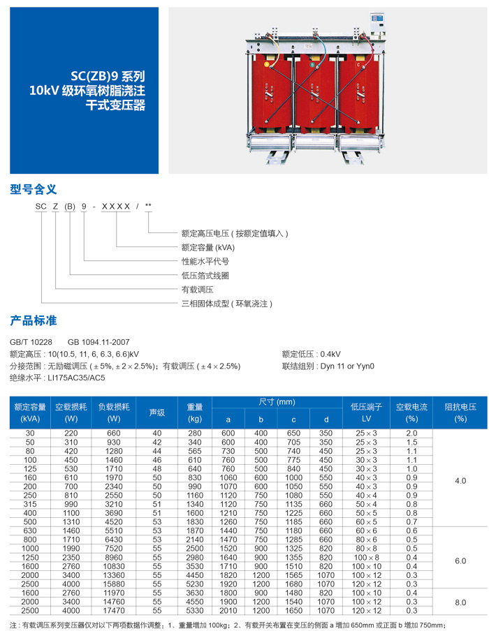 | SC(ZB)9系列10KV级环氧树脂浇注干式变压器 |