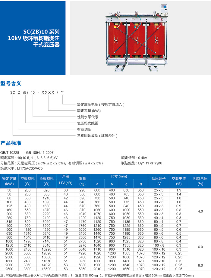 | SC(ZB)10系列10KV级环氧树脂浇注干式变压器 |
