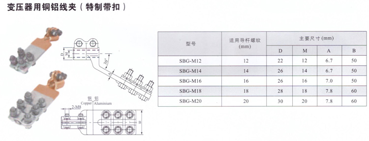 SBG 变压器用铜铝线夹