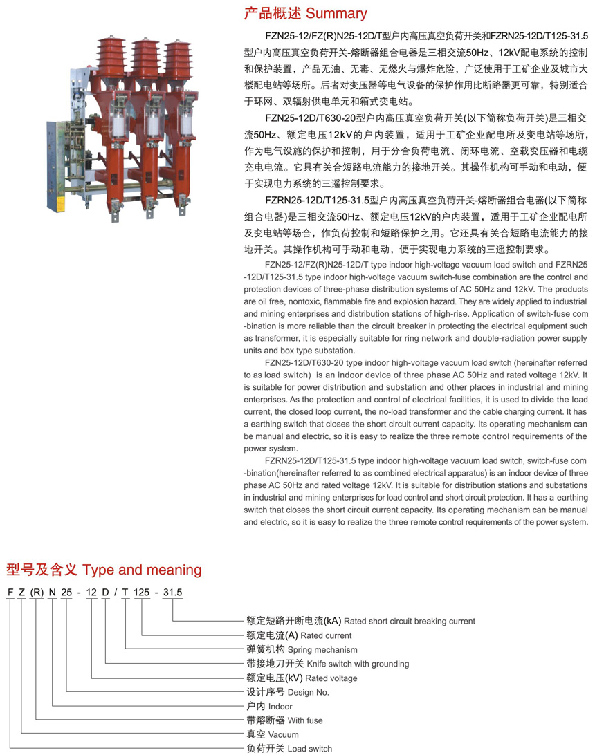 FN25-12/FZRN25-12D/T户内高压真空负荷开关