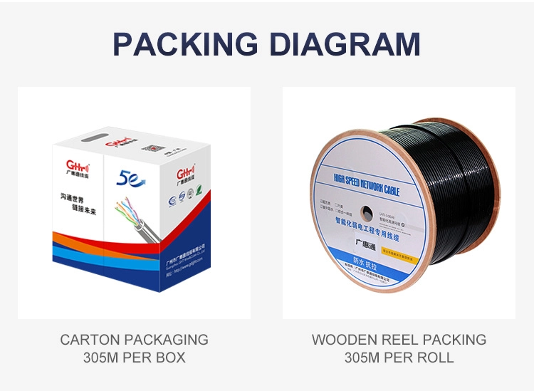 GHT - Cat5e FTP 铜 CCA 导体 风箱电缆 Cat5 外部 FTP 以太网 户外电缆 双套套 305米
