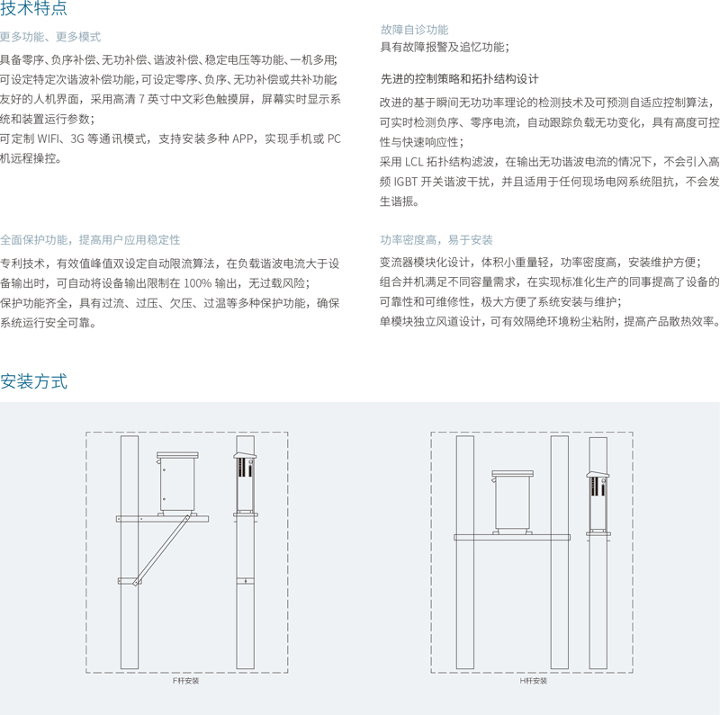 无功、谐波、三相不平衡及N线电流同时补偿,一机多能;台区柱上无需增加额外设备,节约空间和减少运维工作量;