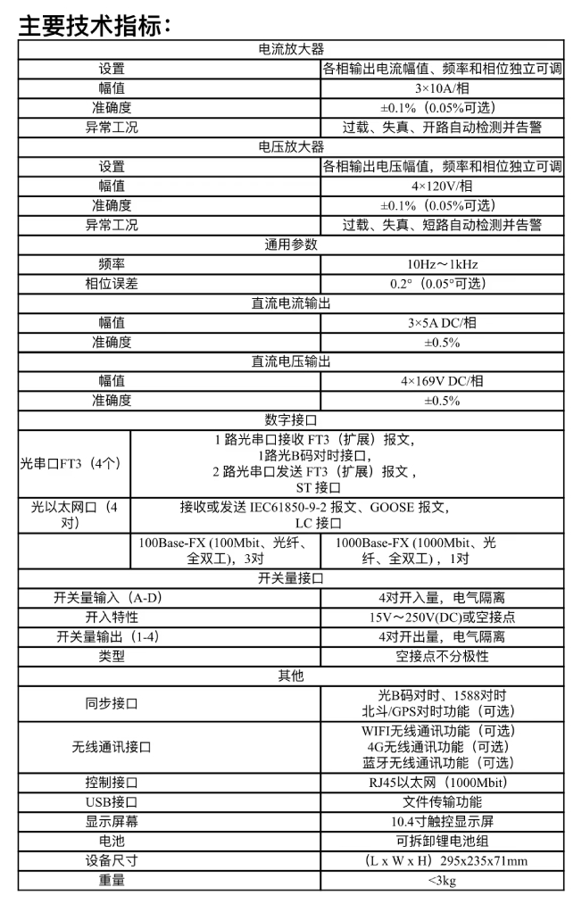 (3)4路120V模拟量电压输出,3路10A模拟量电流输出;