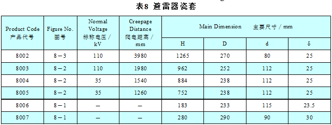 瓷套安装地点海拔不超过1,000米;部分瓷套可用于海拔不超过4,000米的地区,环境温度在-40~+40℃。 瓷套按照高压电器的要求设计为污秽等级Ⅲ级、Ⅳ级水平。