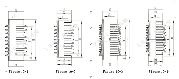耐污型及耐重污型瓷套的伞形采用了经人工污秽试验优选的大小伞相间的平伞形结构和伞下带棱的伞形结构,伞形设计完全符合lEC60815,由于小伞处于大伞的保护之下不易受污染,且大伞间间距较大,改善了伞间放电特性,提高了瓷套的耐污性能。有的瓷套还设计了带断水伞的结构。经污秽试验及长期运行,我公司生产的瓷套可适用于0.036~0.15 mg/cm2盐密条件下使用。
