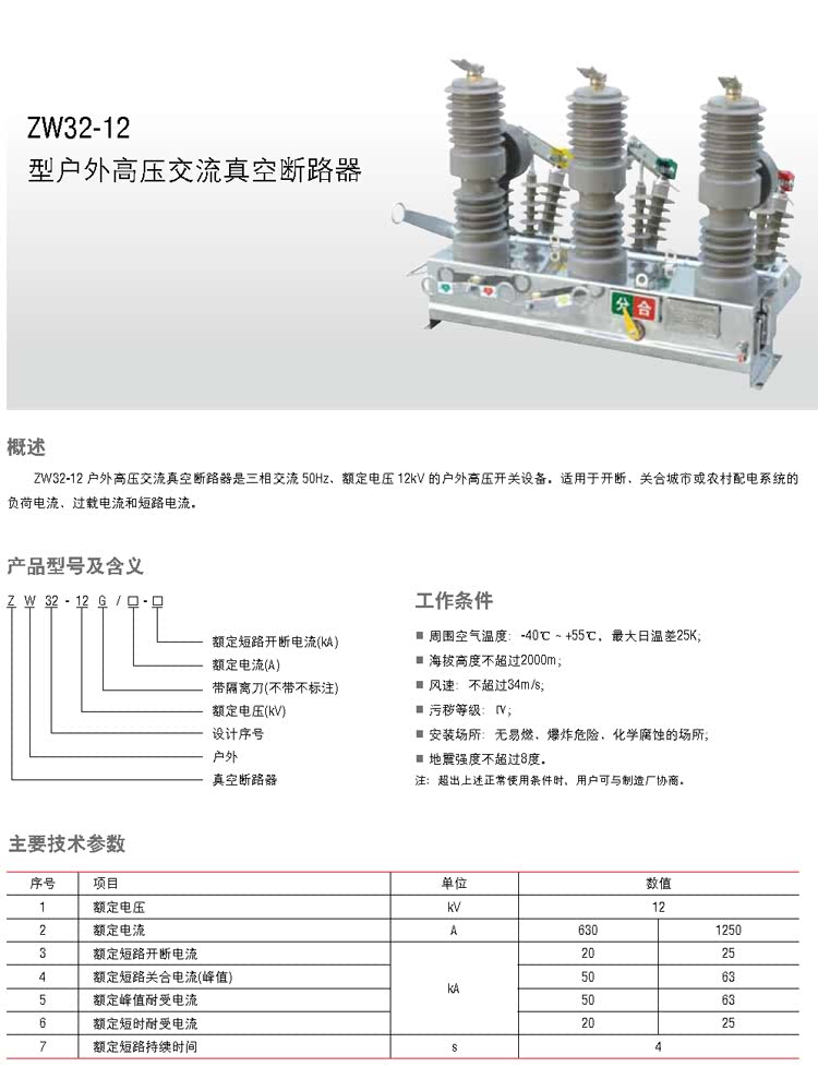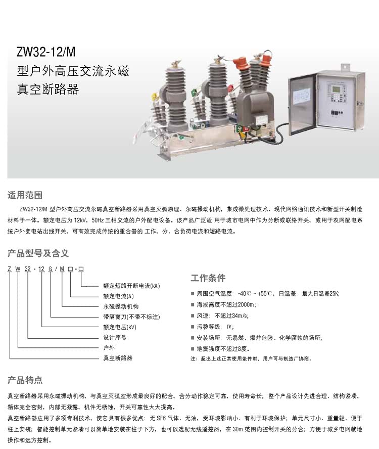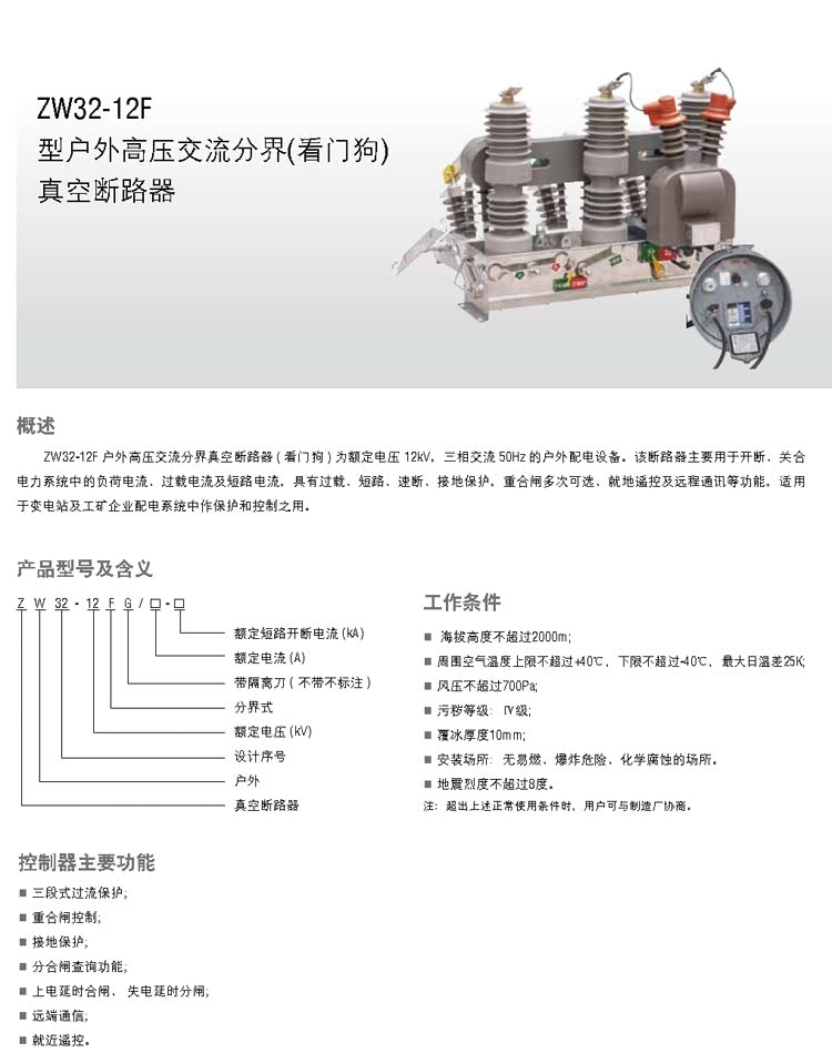 ZW32-12型高压交流真空断路器 ZW32-12M型户外高压交流永磁真空断路器 ZW32-12F型户外高压交流分界(看