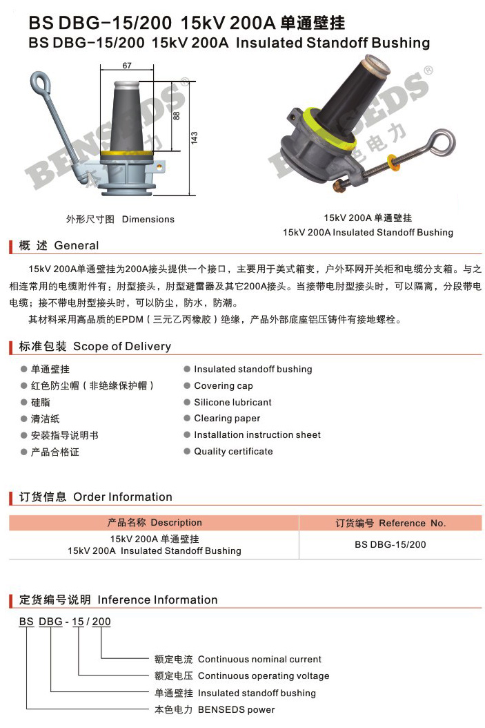 200A系列电缆附件/BS DBG-15/200 15KV200A单通壁挂