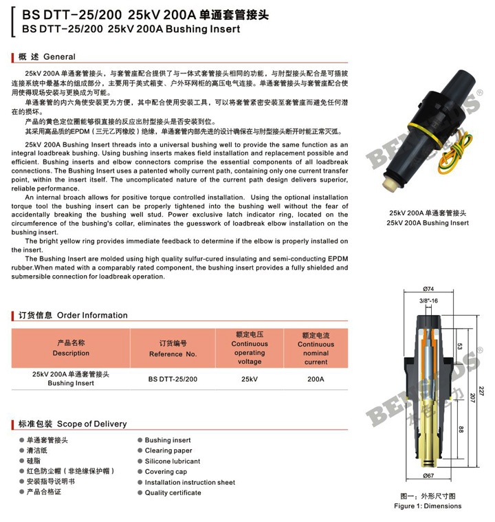 200A系列电缆附/BS DTT-25/200 25KV 200A单通套管接头