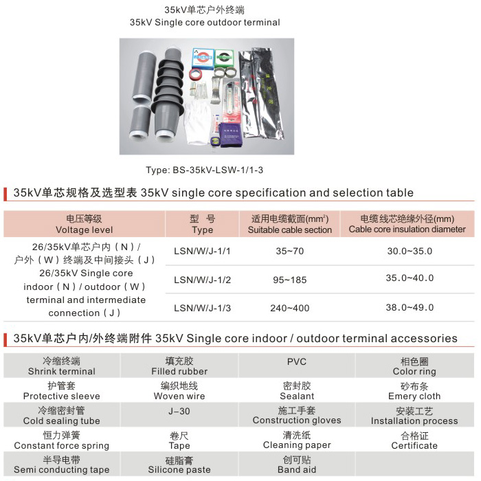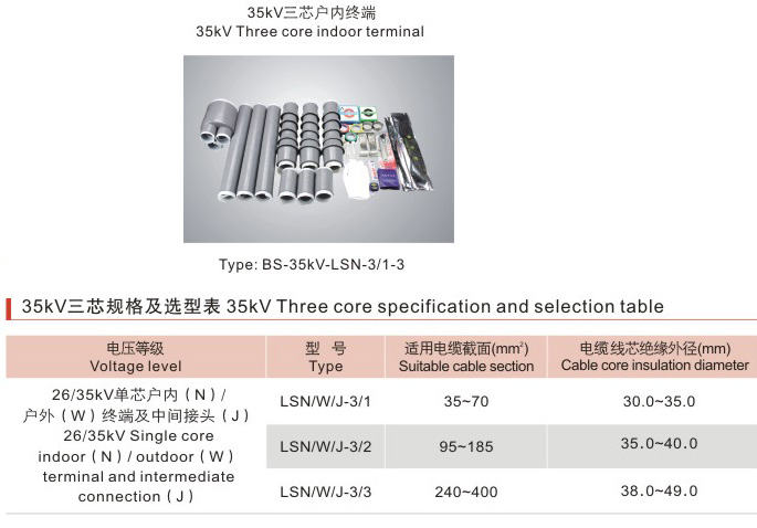 冷缩电缆附件/35KV单芯户外终端、35KV三芯户内终端