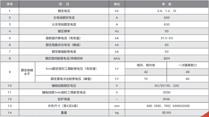 本产品符合IEC60298、IEC62271-200、IEC62271-1、GB3906、GB/T11022、DL/T404等有关标准的要求,并且具备完善的“五防”功能。设备的适用性强,具有体积小、重量轻、操作(手动、电动)简单、操作力小、有明显断口点、使用安全、维护方便、质量稳定可靠、占地面积小等特点。