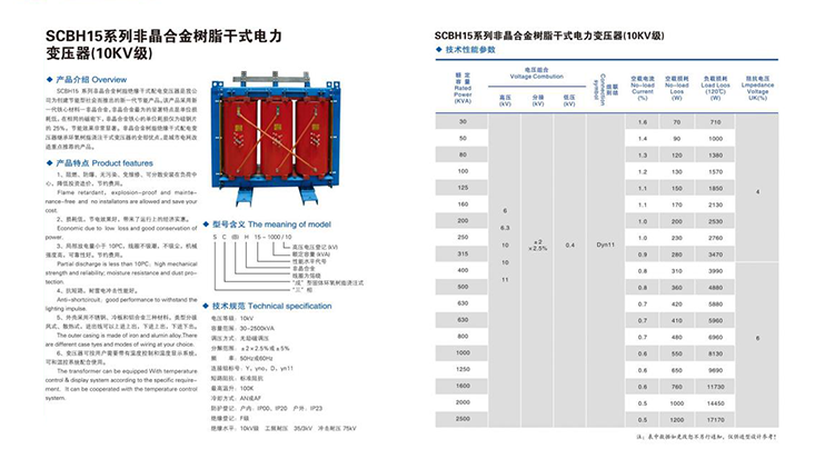 SCBH15系列非晶合金树脂干式电力变压器(10KV级)