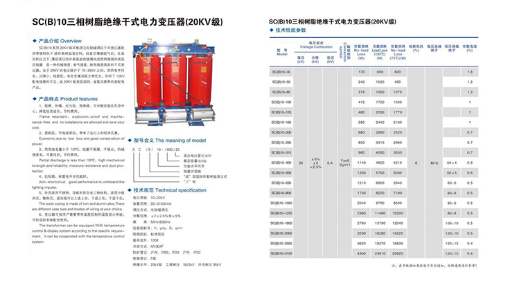 SC(B)10三相树脂绝缘干式电力变压器(20KV级)