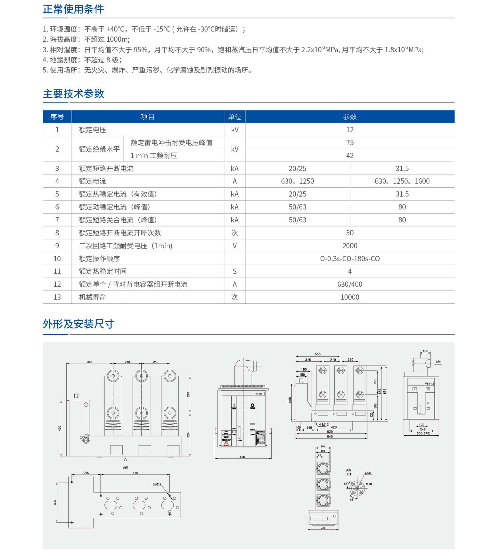 VS1-12G系列侧装固封式高压真空断路器系户内高压开关设备,适用于额定电压12kV、频率50Hz的三相电力系统中,作为保护和控制电器使用,由于真空断路器的特殊优越性,尤其适用于需要额定电流下频繁操作或多次开断短路电流的场所。