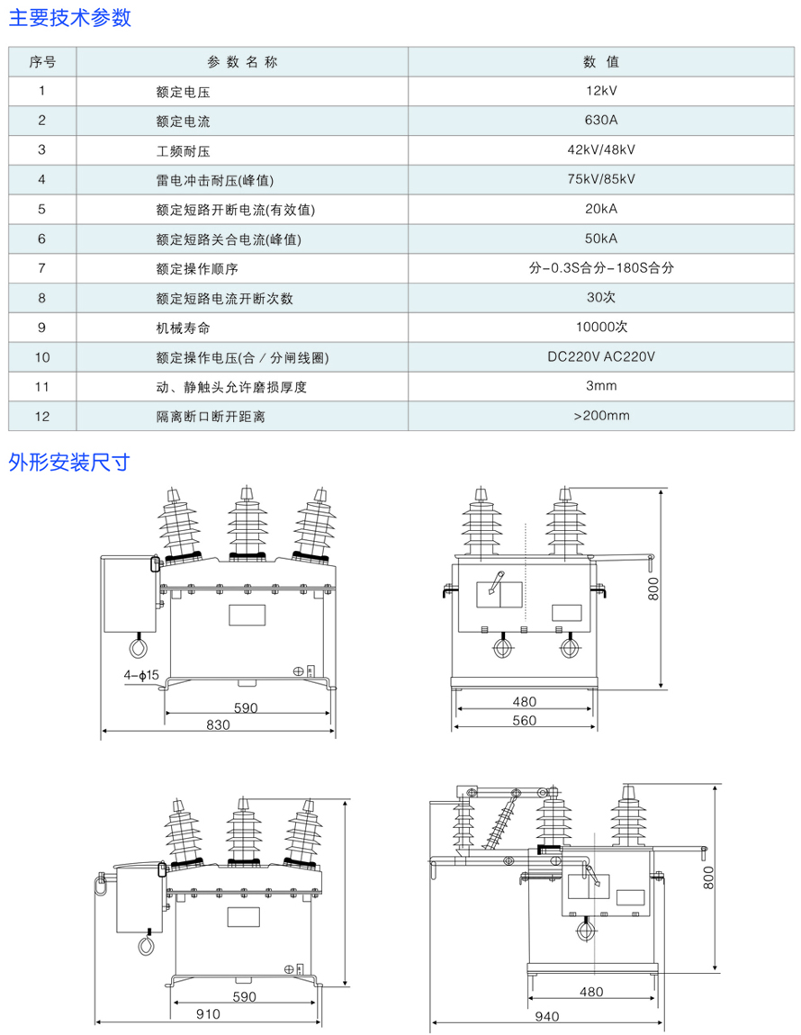 ZW8-12/630-20户外高压真空断路器产品真空灭弧室采用陶瓷外壳,杯状纵磁场触头结构,铜铬触头材料,具有优良的开断和关合短路电流能力。