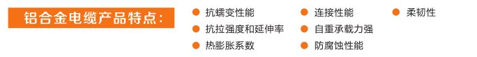 铝合金电力电缆是以AA8000 系列铝合金材料为导体,采用特殊辊压成型型线绞合生产工艺和退火处理等先进技术发明创造的新型材料电力电缆。合金电力电缆弥补了以往纯铝电缆的不足,虽然没有提高了电缆的导电性能,但弯曲性能、抗蠕变性能和耐腐蚀性能等却大大提高,能够保证电缆在长时间过载和过热时保持连续性能稳定,采用AA-8030系列铝合金导体,可以大大提高铝合金电缆的导电率、耐高温性,同时解决了纯铝导体电化学腐蚀、蠕变等问题。铝合金的导电率是最常用基