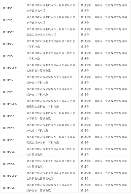 为了减少回路间的相互串扰和外部干扰,电缆采用屏蔽结构。电缆的屏蔽要求是根据不同场合分别采